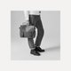 外層在設計上安排了兩個側邊的口袋,提供存放常用的隨身物件。正面的隱藏平口袋可用來擺放個人證件或皮夾。固定於袋口兩側可調節皮革束帶則是可依據包袋內層的容量來調整固定袋口的鬆緊度,取代傳統拉鍊在使用上的侷限以及耐久性。