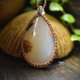 ◆このたびはゴールドブラウン色の蝋引き糸を使用しマクラメ編み装飾を施しました。