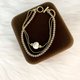這款手鏈的多層次設計給人一種層次豐富的視覺效果。第一層為閃耀鋯石手鍊,散發光芒,為整體造型增添了珠寶飾品的華麗感。第二層是精緻的圓珠鍊,營造出一種時尚的現代感。最令人驚艷的是第三層,由巴洛克珍珠手鍊構成,賦予手鏈一種古典優雅的風格。三條層次完美串接在秀氣迷你珍珠OT扣上,呈現出獨特的品味。高級品味的象徵