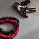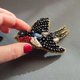 黑色燕子胸針,手工串珠鳥形胸針,女士珠寶禮物