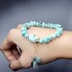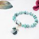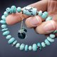 **1.圖上松石主珠長約15.8mm、寬約11.3mm,鍊身松石扁珠直徑約7-10mm,藍碧璽古錢直徑約6.9-12.8mm,整體手圍約16cm。**