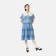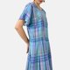 【蛋植物古著】水氣微風格紋短袖古著洋裝 - 洋裝/連身裙 - 其他人造纖維 藍色