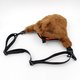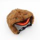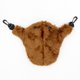 外側表面はシュタイフシュルテ社の高級モヘア、裏面は耐久性の高いナイロンコーデュラ。口のなかはオレンジ色のナイロン。目の裏側のベルトは取り外し可能で、キーホルダーなどに使用できます。