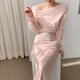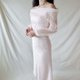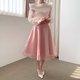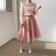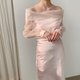 【Sample Sale】歐根紗一字領粉色雪紡上衣