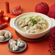 2.退冰後,先將湯包倒入鍋中,加熱約30-40分鐘至煮滾後,再加入雞肉丸、雲吞,滾煮約5-8分鐘後,全熟即可食用。