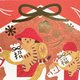 きのこねこが米俵と福袋を持って、馬にのってやって来ました。