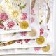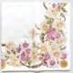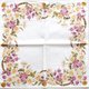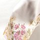 Elegant vintage handkerchief featuring a luxurious floral print of soft white daisies and pink roses intertwined with leather straps, gold chains, and medallion motifs. The delicate pastel tones and ornate detailing evoke classic English elegance.