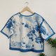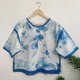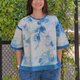Round neck indigo paint crop top. Handmade one of a kind indigo paint marble pattern, lovely design, cool indigo dyed technique pattern.