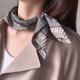 這條Fendi棉質方巾以深沉的灰色為基調,上面點綴著精緻的鑰匙圖案,設計繁複細膩,帶著復古的華麗氣息,讓人忍不住多看幾眼。方巾的邊緣鑲嵌著帶有「FENDI」標誌的條紋紋路,條紋間的對比色調增添了層次感,散發出一種低調奢華的魅力。觸感輕柔如絲,質地柔軟卻不失挺括,無論是輕鬆繫在頸間、隨意披掛在肩上,還是巧妙點綴在手袋上,都能瞬間提升整體造型的時尚度。