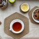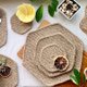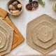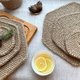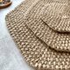 Set of natural jute napkins in three different sizes: a large placemat, a medium napkin and a mug rug.