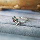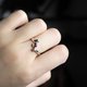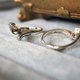 リリング内に留めた宝石は、重ね留めすることでこのような不思議な色彩を表現しています。