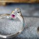 ふくりん留めしたペリドットとルビーの重なった色合いは、まるで美しく彩る玉虫色よう。