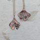 Pendant made of copper-platedGinkgo leaf and glass cabochon. I oxidized and polished the copper to bring out the highlights in the metal. Lacquered to preserve shine polish.
