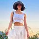 - 其迷人的設計特點是湯匙領、頂部和底部的小褶皺以及帶有後拉鏈的方領口。