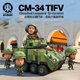 - Q版CM-34雲豹30機砲戰鬥車以可愛卡通風呈現台灣現役陸軍八輪裝甲車設計, 車體方墩短小,保留原車精密外觀與細節。艙門蓋可自由開啟關閉,有部分內構展示 輪胎可轉向,附上可愛大頭女兵乘組員,適合作為喜愛卡通化的國軍裝甲車模型收藏或展示。