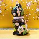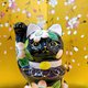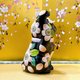 黑色底的招財貓配上櫻花圖案作為藝術品