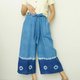 Cotton Indigo tie dye 3 tones color with white line. Nice and comfortable wide leg 3/4 length with 2 pockets and elastic waist, lovely design, cool indigo dyed pattern.