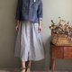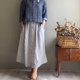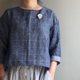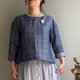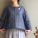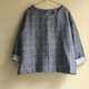 貓咪與小灌木/單寧色的大方格亞麻/七八分袖小上衣100%麻