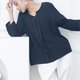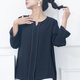 白車縫線襟片七分袖上衣 黑色 - 女上衣/長袖上衣 - 其他材質 黑色