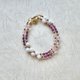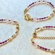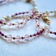 素材:天然石(ルビー3mm、淡水パール5mm)グラスビーズ ナイロンコートワイヤー 留金具(ステンレス、合金)