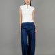 這款寬腿牛仔褲以高腰設計與側邊褶邊搭配精緻盤扣,輕鬆提升時尚品味。從職場休閒到週末約會,皆能完美切換。搭配無袖鏤空牛仔旗袍上衣,綻放迷人風格。