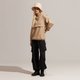 半開襟拉鍊為基底的連帽衝鋒衣,以機能材質打造日常穿著,滑順面料具有吸濕速乾、抗菌除臭的功能。正面配有大口袋增加收納空間,提升機能性。袖口、領口皆有高彈性的鬆緊帶。立體廓型搭配率性俐落的背扣披風設計,使整體造型更富有層次感。
