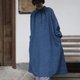大人の上品な可愛らしさを演出 丸襟ワンピース ロングワンピース リネンワンピース 青 250918-1