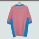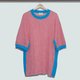 ルーズフィットのリンガーTシャツ。 生地の表面は凸凹にプリーツ加工がされ独特な縮み/伸縮性があり、肌に密着するということがないため、サラッとした着心地。 元々シワのような生地で弾力もあるので、折り曲げてもシワになりにくく、旅行などで便利。 汗などの水分を吸収しやすく、凸凹により空気を通しやすい性質もあり、速乾性にも優れる。 1サイズの展開になります。