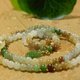 5公釐的和田玉圓珠精心挑色搭配串制的多圈手串,在方寸之間匯聚了天地豐富的色彩。它以潔白、淺晴、深晴、湖水之藍,勾勒出天空與水域的清澈透亮;又以淺碧、深碧的綠色,帶來草木生長的盎然生機;黃口的明亮、糖色的溫暖與煙青的朦朧,則彷彿收藏了四季更迭的光影。良好的水頭,光澤溫潤的質地,顏色明麗鮮明,有一定的通透與油潤度。細觀玉中偶伴天然的水路云絮,碧玉間灑落細微墨點,這些並非瑕疵,而是歲月自然的筆觸,為美玉增添了獨一無二的印記。手串有一枚可隨心取戴的碧玉小魚,作為活潑的滴溜,寓意「年年有餘」;一朵以天然淡水珍珠為蕊的琥珀五福花,象徵「五福臨門」,為整條手串注入了吉祥的祝願。這種多寶的設計,本身便蘊含著匯集世間美好、護佑平安的深意。因天然性,個別玉珠可能存在些許綿雜,但這恰恰保證了每一件都是無法復制的孤品。自古相傳,和田玉溫潤養人,既能安神靜心,亦能涵養性情。腕間擁有這樣一條多彩的手串,彷彿將一片斑斕而寧靜的山水環繞於身。整條手串彷彿一卷微縮的江山畫冊,四季流轉,福瑞相隨,於腕間低語著自然與時光的詩意。