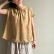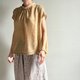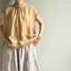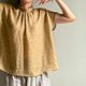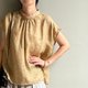 流金歲月/金黃色高級純棉提花半高領/高立領法式袖短袖上衣