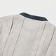 さらに、素材には上質なフレンチリネンを採用。麻独特の風通しの良さと、しなやかな肌触りが魅力です。そしてもう一つのポイントが、ボディと袖が生成り、襟とカフスがネイビーというコンビカラーデザイン。この配色が、清潔感と知的な印象をまとわせ、全体のシルエットを引き締めます。