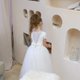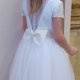 連身裙的緊身胸衣採用柔軟的面料製成,襯裡由絲綢製成,更加舒適,領口漂亮,背面飾有網和紐扣,輔以可愛的蝴蝶結。