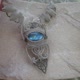 Earthy linen color "Lunar Goddess" macrame necklace with a labradorite crystal, brass decorations and brass celtic trinity symbol. The symbol honors the three lunar phases and faces of the Great Mother, a lunar goddess. Length is easily adjustable with a slide knot.