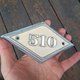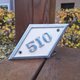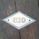 Soviet vintage number plaque 510. Number sign 510. House door plate 510. Rhomb shape. Beige front color. Aluminum metal. Apartment 510 office studio door sign.