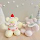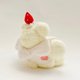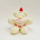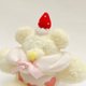 ふわふわの毛並みと、頭にちょこんとのせたいちごとホイップクリーム、お腹のハートとクリームがチャームポイント。
