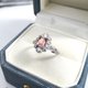 祖母綠式切割,櫻花碧璽,柔美粉紅色,主石搭配古典的戒台設計,呈現出柔美宮廷風格,精巧設計,適合日常配戴。