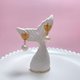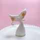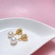 紗織小姐用一對9.5-10mm的雪亮的天然淡水珍珠垂墜在立體鏤空香檳金色的芭蕉葉下,呼應而靈動,俏皮美好而有被愛的寓意。設計師希望你永遠相信愛情,能夠感受到愛情帶來的內心小鹿亂撞的感覺。