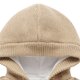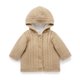 ◆胸前的木質鈕釦方便穿衣,連帽設計舒適保暖