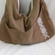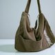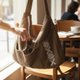 這款肩背包為手作設計,融合了實用性與自然溫潤的美感。選用柔軟且耐用的燈芯絨布料,並搭配精緻刺繡點綴。