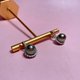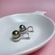 這一對大溪地黑珍珠在黑珍珠的底色上泛出鮮明的孔雀綠暈彩,充滿著來自大洋海底的神秘感,直徑9.7mm,皮光細膩,鏡面光澤,孔雀綠色炫彩,兩顆珍珠生得很有靈性,形狀略有一點不同,微微瑕社交距離不可見。紗織小姐為其配s925銀鑲鋯石的新古典Artdeco風格耳扣,可表現出女性的颯爽英姿,於理性平和中散發出一點微微的進攻性,是為大颯蜜,360度無死角綻放光彩。