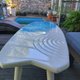- We offer a coffee table in the shape of a surfboard. Very stylish, original. The table legs are made of durable wood - ash. It is coated with several layers of polyurethane varnish. But in any case, loves delicacy. If you put the coaster on the table under the cup and will not leave it in the rain, it will be grateful. So are we too)