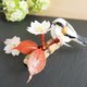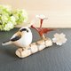 エナガは、2種類の白い和紙を貼り重ねることで 羽毛の柔らかさを表現したり、目の上の黄色いアイシャドウなどの細かな特徴も和紙で色付けています。