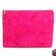 ■シンプルなポーチです。 鮮やかで手触りのよいスエードを使用し、豊かな感触を持つ一品に仕上がっております。軽さ、丈夫さ(内張りの生地がしっかりしているため、全体的にピンと張った仕上がりです。)もあります。内生地の柄も外スエードとよくあいまっています。