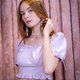 方領泡泡袖上衣 (紫)