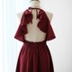 Elastic stretchy waist back that sewn with neat and care , The dress is self tie halter , Full lined