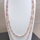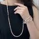 「玫瑰漫步」以糖果色珍珠混排呈現柔亮色感,粉、白、紫交錯出細緻的法式光影。長度充足、變化多樣,可作為單圈長鍊、雙圈疊戴、三圈點綴,也能將扣頭側扣作為小亮點,一條多戴,造型自由度極高。
