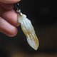 ——金玉滿堂。玉質凝潤細膩,色澤凝潤亮澤,韻味十足。立體圓雕已熟透的玉米塊和玉米顆粒,肉質顆顆飽滿,根脈線條清晰自然,寫實逼真,令人垂涎,其中還雕刻了如意,寓意事事順心如意,是配戴的佳品。