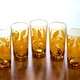 日本早期玻璃杯組,一組5入不拆賣,琥珀色葉子圖案,口徑6公分,高12公分。