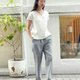 Iris Long Pants Linen check pattern