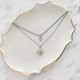 兩種類型的鏈條與方晶鋯石飾品結合,打造出簡單的雙股頸鍊。